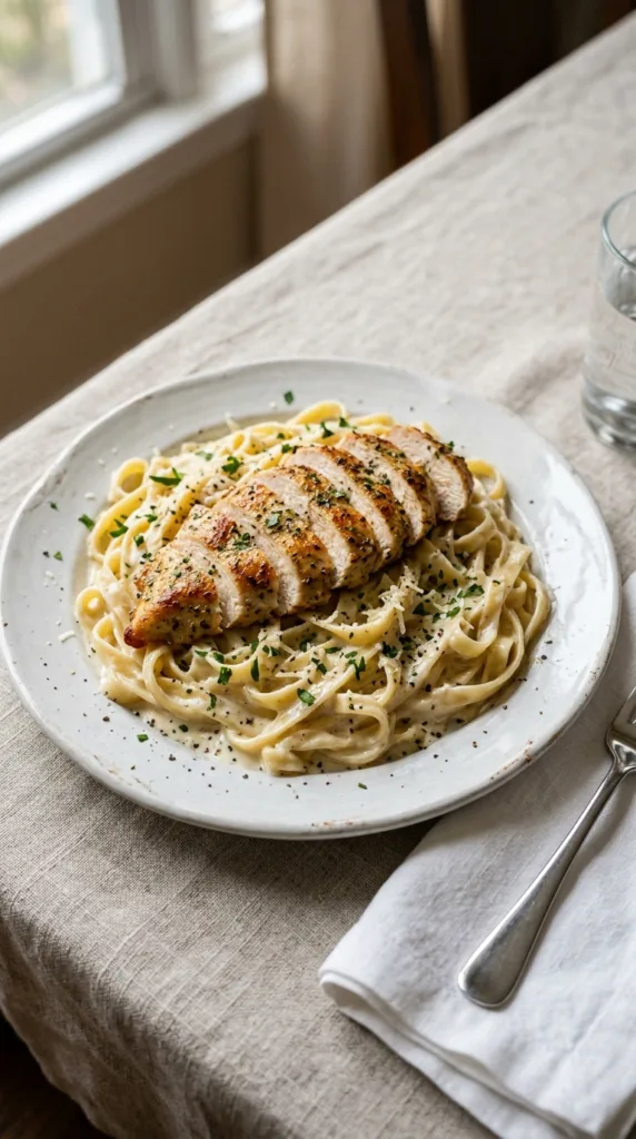 This Garlic Parmesan Chicken Pasta is a high-protein, low-sodium dinner that proves healthy eating can be incredibly delicious. With tender seared chicken and a velvety garlic-Parmesan cream sauce, this low-sodium recipe packs 23 grams of protein per serving, making it perfect for meal prep and active lifestyles .