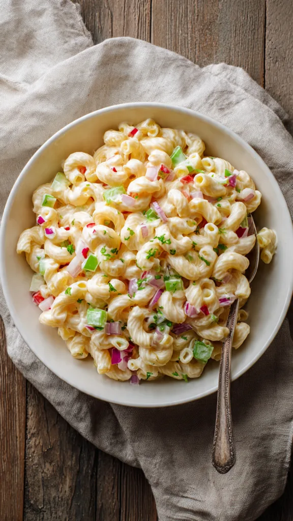 This classic macaroni salad is the nostalgic side dish everyone hopes to see at the picnic table. It’s creamy, tangy, and perfectly crunchy thanks to the fresh veggies folded throughout. This recipe is perfect for those who love a traditional, no-fuss salad that actually gets better after a few hours in the fridge.