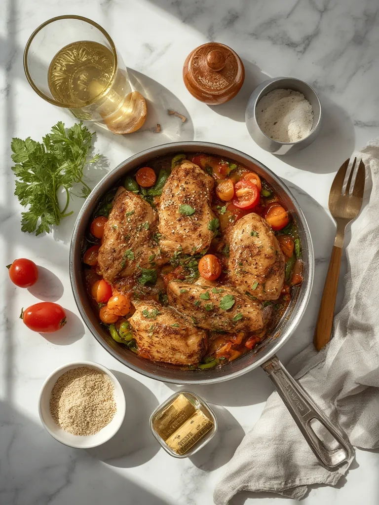 To create this vibrant and delectable Mediterranean Chicken Skillet, you’ll need a few key players that bring together the heart and soul of Mediterranean flavors. Each ingredient plays a crucial role in building the dish’s complexity and nutritional value.